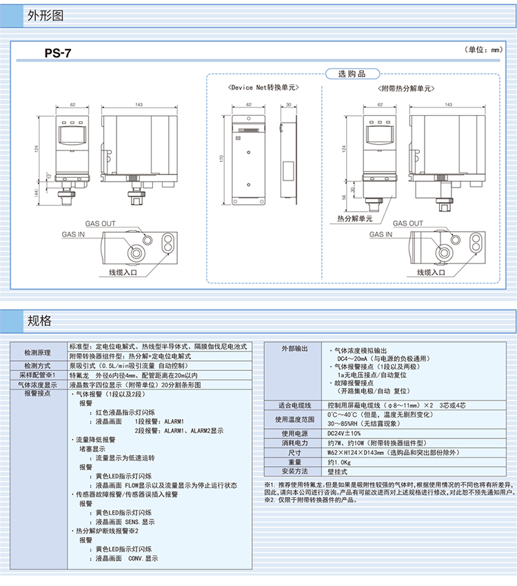 產品名稱:日本新宇宙PS-7 固定式氣體檢測儀