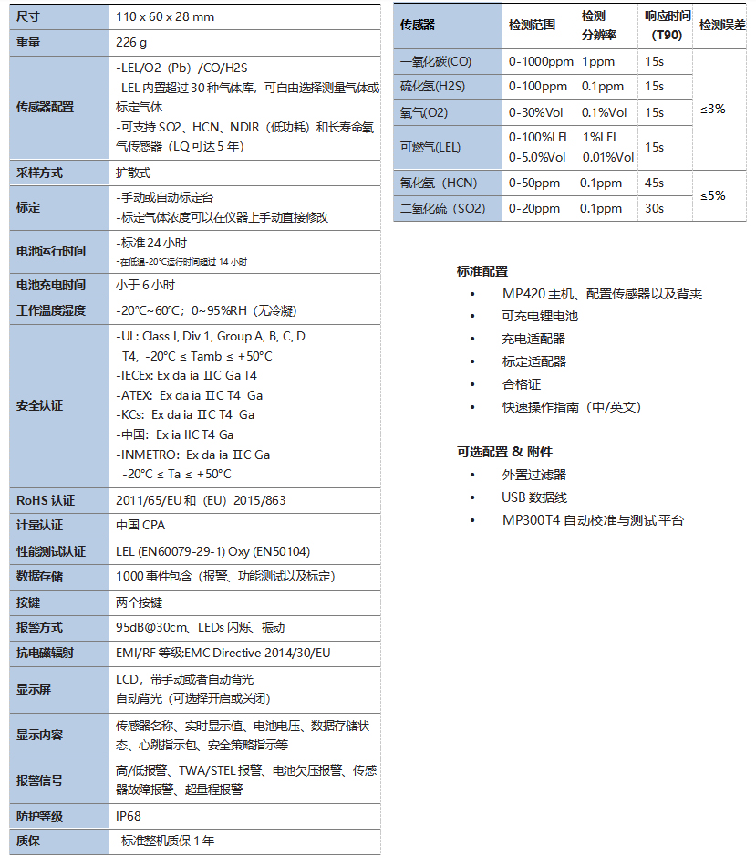 產品名稱:盟莆安MP420四合一氣體檢測儀