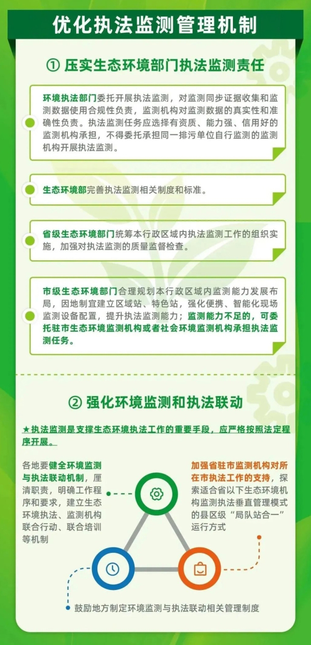 《通知》結合環保垂改實施情況,進一步明確和壓實國家、省和市級生態環境部門執法監測責任,提出強化環境監測和執法聯動的有關要求,鼓勵各地制定環境監測與執法聯動相關管理制度。