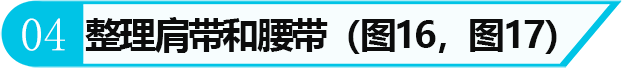 利用D形環和腰帶扣將背托調整至合適的松緊程度。在保證背戴牢靠的前提下,以佩戴舒適為宜。