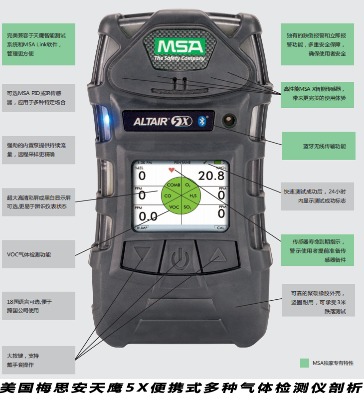 天鷹(ALTAIR) 5X多氣體檢測儀是MSA結合多年設計經驗,采用MSA專利X智能傳感器技術的全新、系列化便攜式氣體檢測儀表。